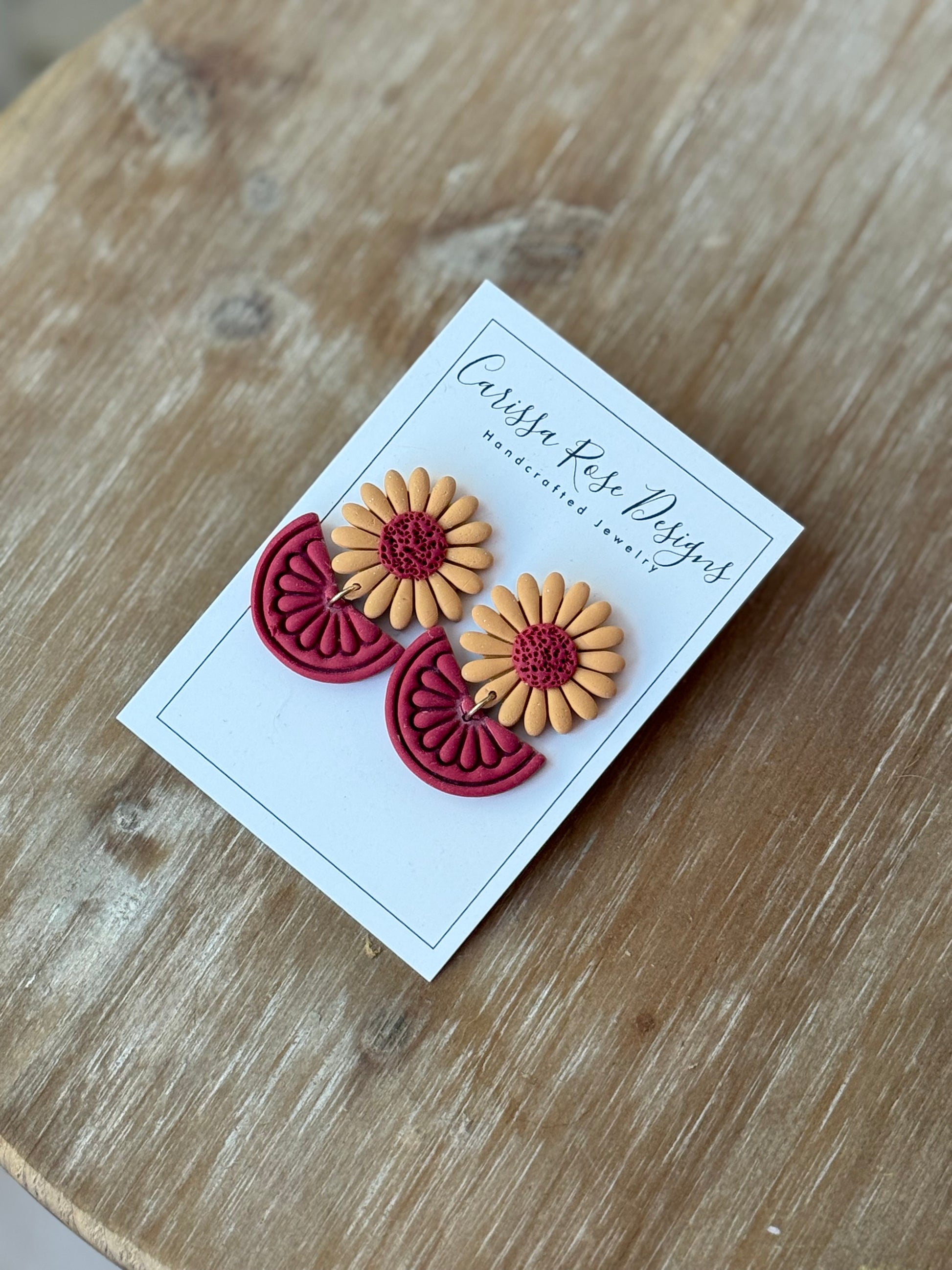 Fall Inspired Yellow and Berry Sunflower Statement Earring
