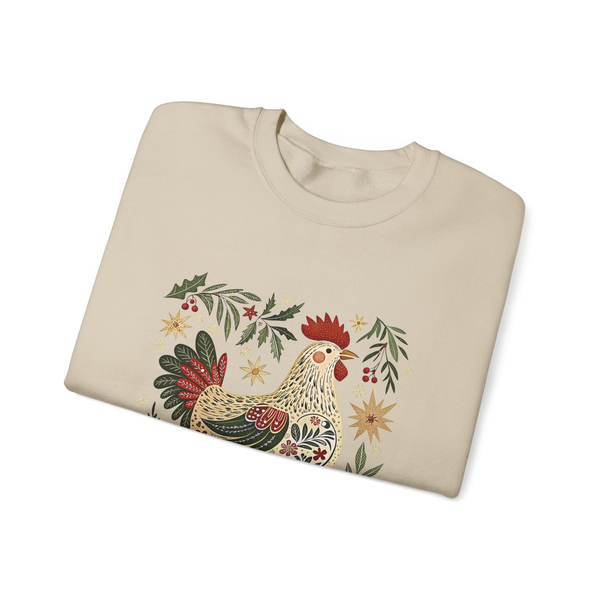 Embrace comfort and style with this Unisex Heavy Blend™ Crewneck Sweatshirt, designed to keep you cozy during chilly days and festive celebrations. The whimsical artwork featuring a beautifully decorated hen brings a joyful vibe, perfect for adding a touch of character to your everyday wardrobe. Ideal for casual outings, holiday gatherings, or cozy evenings at home, this sweatshirt is a versatile addition for anyone who enjoys a blend of fun and comfort. Great for all ages, it makes an exceptional gift for family and friends during holidays like Christmas, Thanksgiving, or even just as a lovely surprise to brighten someone's day.
